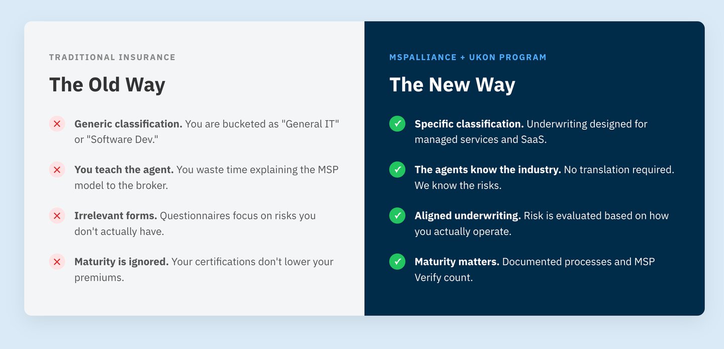 “MSP Verify has always been the gold standard for validating the operational maturity of MSPs,” said Charles Weaver, CEO and co-founder of MSPAlliance. “With the new UKON-powered insurance program, that verification now translates directly into better underwriting, better coverage alignment, and a stronger overall risk posture for our members. This partnership elevates the practical, day-to-day value of MSP Verify – turning trusted attestation into tangible financial and operational benefits for the global MSP community.”